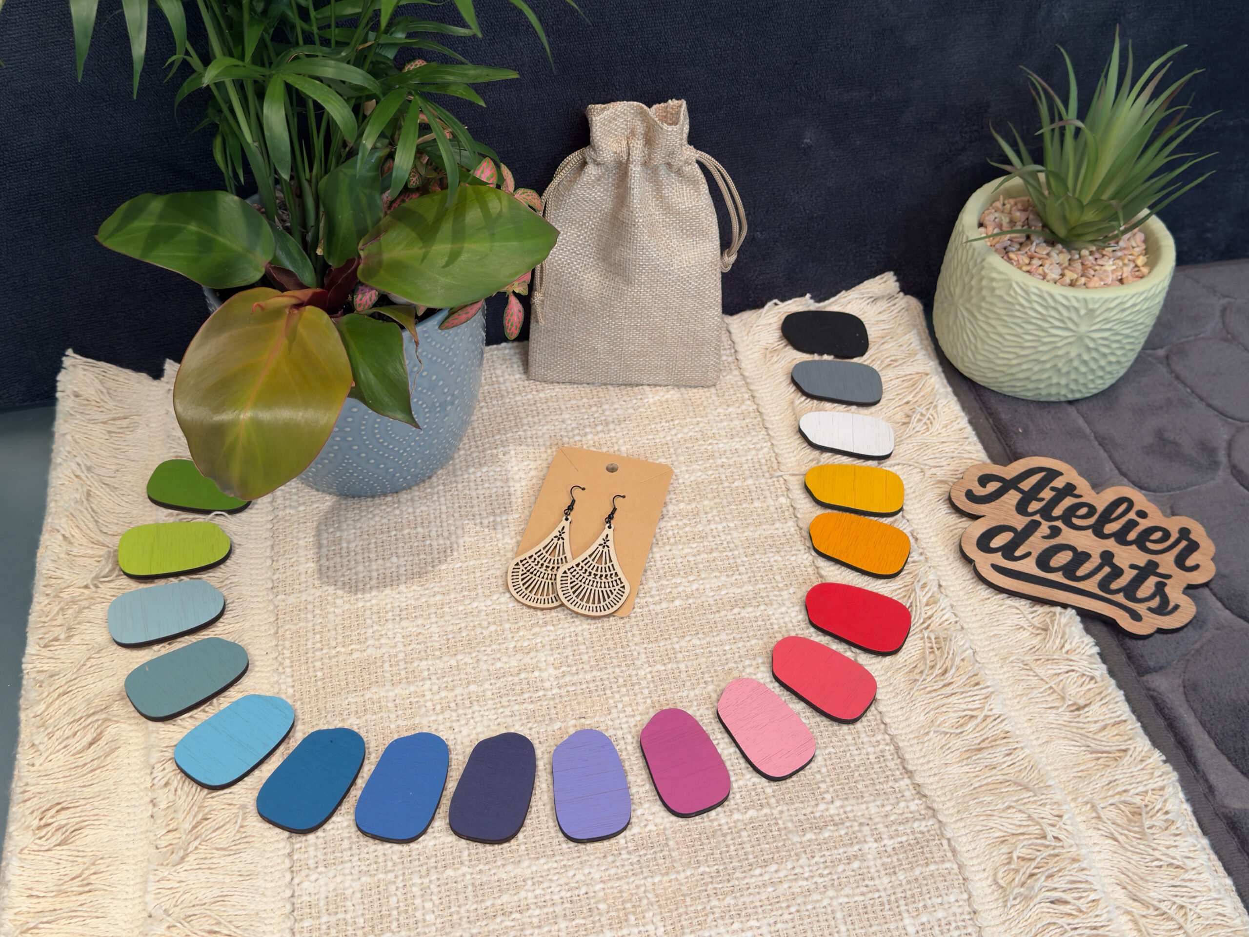 Apportez une touche d’𝗲́𝗹𝗲́𝗴𝗮𝗻𝗰𝗲 à votre style avec ces 𝗯𝗼𝘂𝗰𝗹𝗲𝘀 𝗱’𝗼𝗿𝗲𝗶𝗹𝗹𝗲𝘀 « 𝗔𝘁𝘁𝗿𝗮𝗽𝗲-𝗥𝗲̂𝘃𝗲𝘀 ». Fabriquées en bois léger, elles présentent un motif ajouré inspiré des attrape-rêves traditionnels, symboles de 𝗽𝗿𝗼𝘁𝗲𝗰𝘁𝗶𝗼𝗻 et de 𝘀𝗲́𝗿𝗲́𝗻𝗶𝘁𝗲́. Leur 𝗱𝗲𝘀𝗶𝗴𝗻 𝗱𝗲́𝗹𝗶𝗰𝗮𝘁 𝗲𝘁 𝗮𝗲́𝗿𝗶𝗲𝗻 en fait l’accessoire parfait pour un 𝗹𝗼𝗼𝗸 𝗻𝗮𝘁𝘂𝗿𝗲𝗹 𝗲𝘁 𝗿𝗮𝗳𝗳𝗶𝗻𝗲́. Idéales pour un usage quotidien ou des occasions spéciales, elles ajoutent une note artisanale à votre tenue.