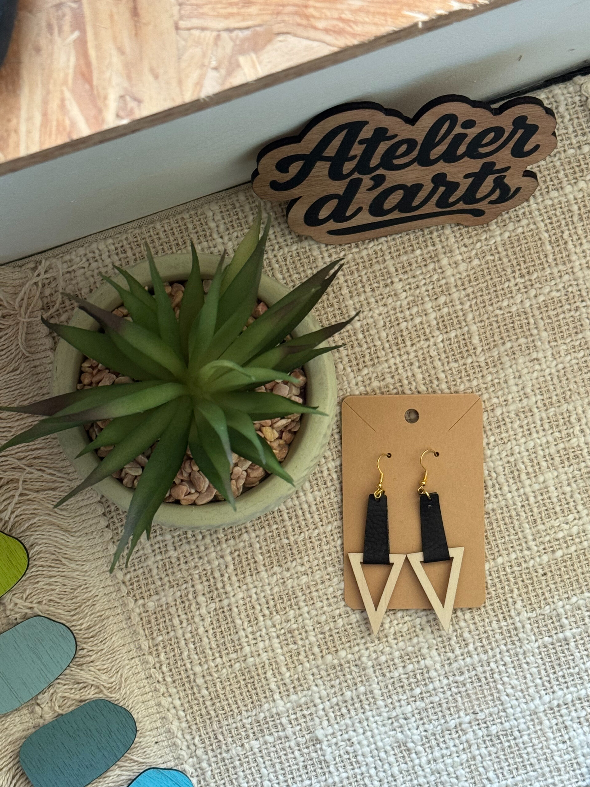 Chaque paire est façonnée artisanalement : le cadre en bois est découpé et poncé dans du hêtre provenant de forêts gérées durablement, puis verni ou peint pour révéler la finesse des fibres. La lanière de cuir provient de ressourceries françaises et est soigneusement sélectionnée et fixée à la main. Les crochets sont en laiton doré ou en acier inoxydable hypoallergénique, fabriqués par des artisans parisiens, pour assurer confort et sécurité au quotidien. Grâce à leur structure évidée et à l’utilisation de matières naturelles, ces boucles d’oreilles sont d’une grande légèreté et agréables à porter toute la journée.