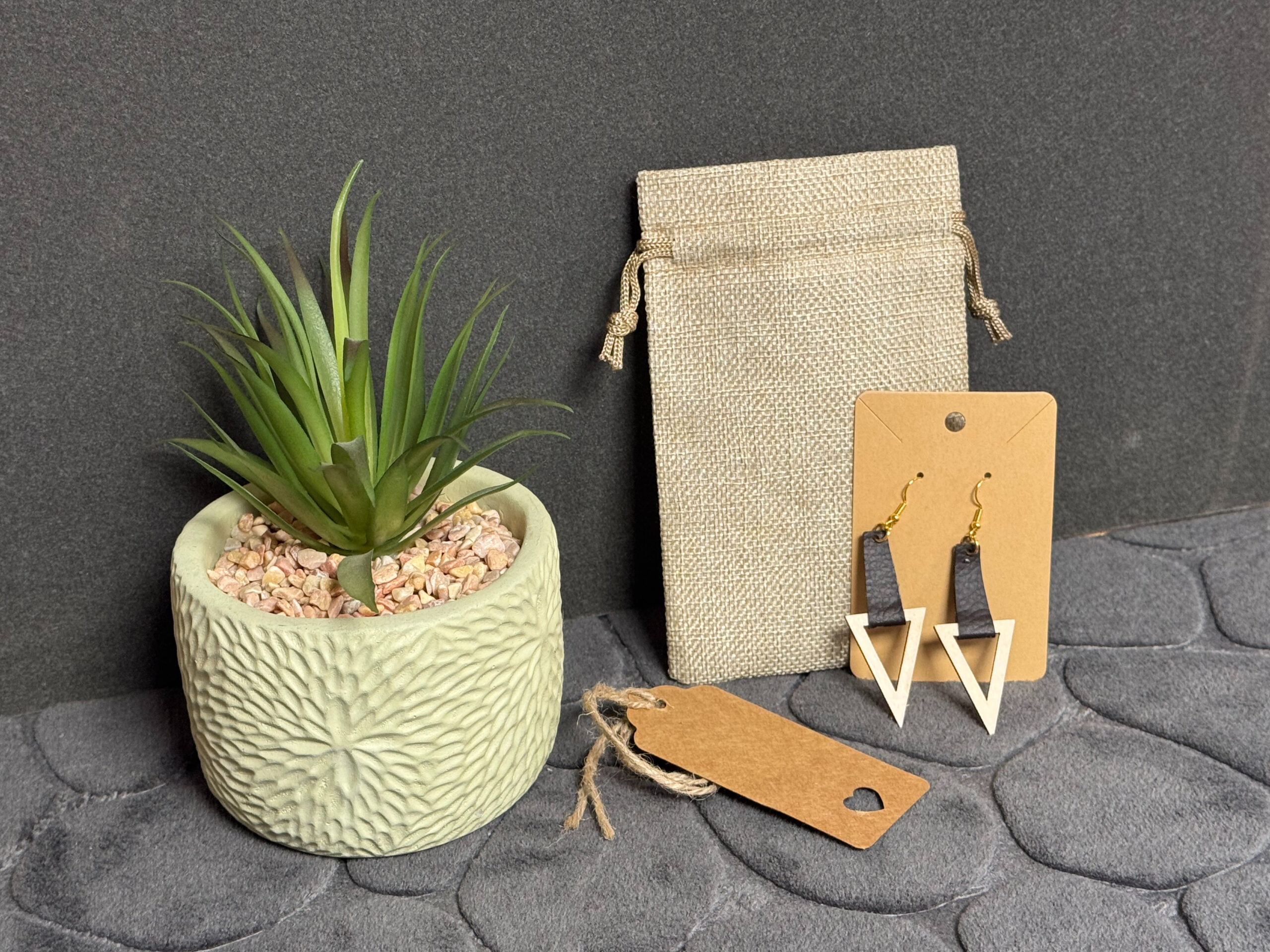 Boucles d’oreilles légères combinant un cadre triangulaire inversé en bois de hêtre durable et une lanière de cuir recyclé gris. La couleur grise évoque la sagesse et la stabilité, tandis que la forme du triangle symbolise l’équilibre et l’union des opposés. Ces boucles, fabriquées à la main en France, sont montées sur des crochets en laiton doré ou acier inoxydable hypoallergénique. Un bijou éco‑responsable et élégant, parfait pour un style moderne et minimaliste.